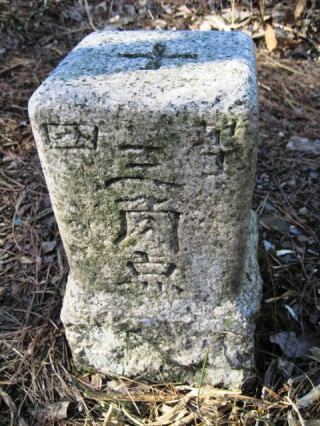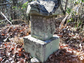 この石祠は明治36年とあります。石祠としてはそう古いものではないですね。いずれにしても、一つ山頂に二つの名前が貼り付けられているのは、紛らわしくて感心しませんねぇ(~_~)