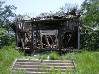 かつてはここにかなり大きなお社があったことが、その礎石からも分かります。私が数年前に初めて訪れたときは、屋根が崩れ落ちた半壊というよりも全壊状態で、中を覗くと大きな絵馬やなにやらの神像があったりして、なんだか異次元の世界に来てしまったような不気味な雰囲気でした。それが今ではきれいに取り片づけられて、小さな石祠が置かれています。今でも御酒が供えられていたりするので、氏子とか信仰者の参拝があるのでしょうね。