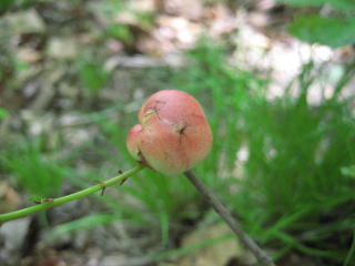 左の写真は、まるで果実のように見えるでしょう?コレはコナラの下ばえに付いていたもので、なんだか食べられそうにも見えますが、虫エイ(巣)の一種だと思います。