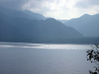 赤岩を過ぎると、上の画像のような少しのアップダウンがあって、国道へ出るまでは40分の距離。ほぼ標準の速さで行けると思うと、誰にも遭わない遊歩道も気楽になると同時に、旅が終わるようで歩行にも惜しむような気分になる。振り返ると、中禅寺湖の南岸方面に雲が出ていて、雲間からの光で湖面が輝いて見えるところがあった。ふと、『ざわめき』という言葉が浮かんだ。