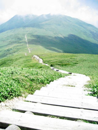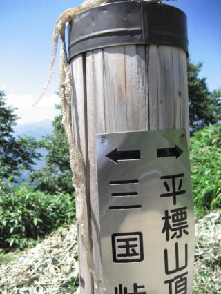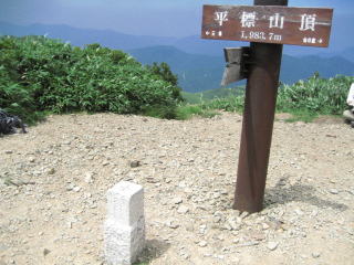 山の家から平標山頂までは50分の距離です。休み休み登って1時間くらいでしょう。ところが私はこの階段道は苦手なのです。山頂までもう少しというところで脚が危うくなりました。ヒザ関節の両脇が痛み足の小指も引きつるようで、明らかに痙攣を起こす一歩手前に来ていることが分かります。痙攣しちまうと、これって痛いんだよねぇ。内心ヒヤッとしましたよ。こんなトコで動けなくなったら万事休すですからね。