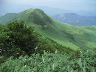 上は仙ノ倉山へ行く整備された階段道。左の写真は下山する松手山方面です。脚に不安がありますから、これを越えて行くのかと思うとちょっと(いいえ、大いに)心配になります。