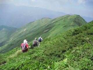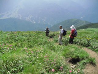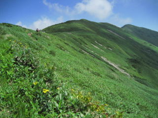 平標山は谷川連峰の西端にあります。標高は2000m足らずですが、森林限界上のなだらかな稜線が美しく、また高山植物が豊かで人気の山です。私は以前からこの山に登ってみたいと思っていましたが、今回山仲間6名で念願を果たすことができました。