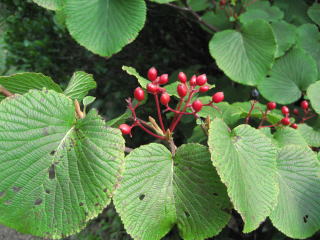こちらはもう赤く色づいてます。オオカメノキ(ムシカリ)でしょうか→