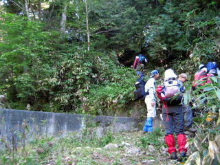 前もって日光沢の宿には湯沢峠越えで入ることを言ってありますが、その時に、2番目の堰堤で右に入るのだが、笹で分かりづらいので注意するようにとのことでした。堰堤はたぶん3つ目だと思うのですが、どこから数えるかの違いかしらね?