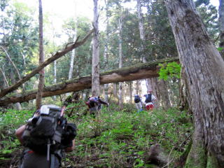 峠から栃木側はシラビソやアスナロ、モミの針葉樹が目立ちます。登山道は群馬側よりしっかりついているように思います。
