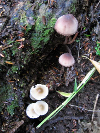 沢から離れ山に入っていくと、こんなキノコやあんなキノコがみられます。右上は猛毒のツキヨタケかなぁ? 一見食えそうで・・・