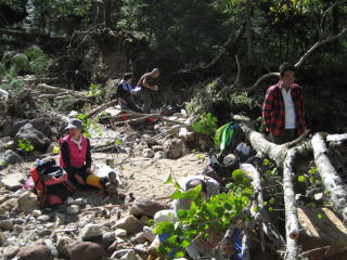 根名草沢は台風の爪あとでしょうか、倒木があったりして荒れてはいるようです。しかし、ガイドブックにも書かれているように、深山の中とは思えぬほど広く明るい河原が広がっていて、気分の良いところでした。